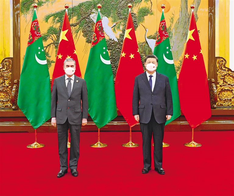 别尔德穆哈梅多夫表示,昨晚我们有幸共同见证北京冬奥会成功开幕,这是具有历史意义的重要时刻,北京成为世界上首个“双奥城市”。土中两国是最真诚、最可靠的朋友和伙伴。在双方共同努力下,近年来土中合作在互利、平等、互信基础上取得长足发展,特别是油气领域深入合作,为两国人民带来了实实在在的福祉。土方愿同中方挖掘潜力,加快推进中亚-中国天然气管道D线建设等重要合作,拓展其他领域交流合作,把土中关系提升到更高水平,书写更加华丽的新篇章。前不久举办的中亚五国同中国视频峰会非常成功,土方愿同中方继续加强这方面沟通合作。