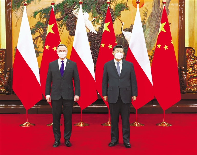 杜达表示,我一直记得习近平主席5年前对波兰进行国事访问时对我发出的“冬奥之约”,■下转第4版  ■上接第2版  我很高兴能够克服困难如约来华,同中国人民一起共享北京冬奥会开幕式的盛大精彩,共迎北京成为世界上首个“双奥之城”的历史时刻。近年来,波中全面战略伙伴关系在各领域发展良好。感谢中方为波兰抗击新冠肺炎疫情提供医疗物资支持。波方高度重视对华经济合作,希望同中方扩大双边贸易投资合作,使波兰农产品更多进入中国市场,欢迎中方企业赴波投资合作,积极参与波兰物流枢纽建设,开展新能源等领域合作,加强双方人员交往,使波兰成为中国通向欧洲的门户。波兰始终积极参与中东欧国家-中国合作,愿继续为推动中东欧国家-中国合作和欧中关系发展发挥积极作用。波方愿同中方加强沟通,维护国际和地区和平稳定。