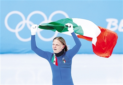 2月7日,意大利选手阿里安娜·方塔纳在夺冠后庆祝。当日,在首都体育馆举行的北京2022年冬奥会短道速滑项目女子500米决赛中,意大利选手阿里安娜·方塔纳夺得冠军。 新华社记者 杨磊 摄