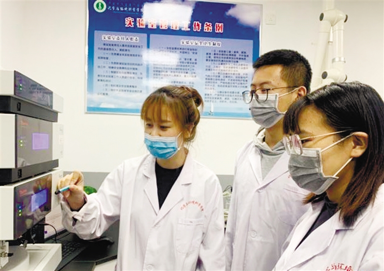 内蒙古师范大学绿色催化院士专家工作站学生进行水质分析。