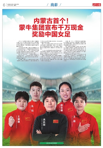 内蒙古首个! 蒙牛集团宣布千万现金 奖励中国女足