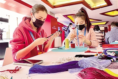 2月9日,在2022北京新闻中心“多彩神州”文化展示区吉林主题日活动上,媒体记者正在体验非遗制作。冬奥会期间,北京新闻中心设置“多彩神州”展区,向1700名非注册记者及国内外来宾展示全国各省、市、自治区的深厚文化底蕴。