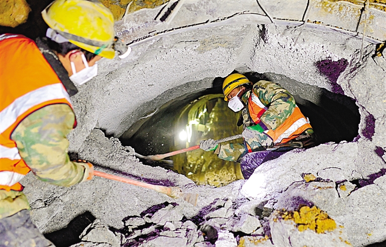 2月9日,建设者在岱海生态应急补水工程3号隧洞里作业。当日,全长4.26公里的岱海生态应急补水工程3号隧洞全线贯通,自此,岱海生态应急补水工程3条隧洞全部贯通。岱海生态应急补水工程从呼和浩特市托克托县境内的黄河干流取水,向乌兰察布市凉城县境内的岱海补水,今年汛期将实现通水。岱海生态应急补水工程完工后,将对遏制岱海湖面面积萎缩,持续增加岱海水量、改善岱海水质、修复生态环境,发展地区经济发挥重要作用。 王正 摄