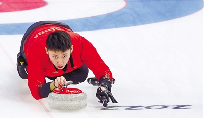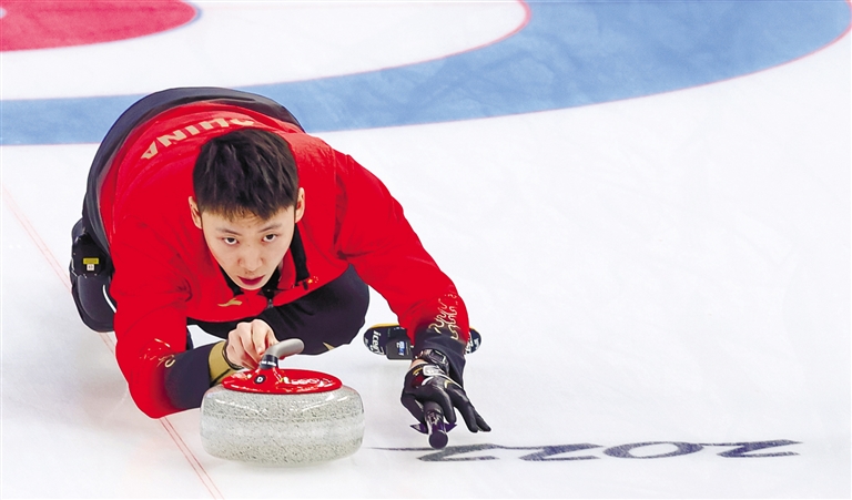 2月9日,中国队选手马秀玥在比赛中。当日,在北京国家游泳中心“冰立方”举行的北京2022年冬奥会男子冰壶循环赛中,中国队迎战瑞典队。