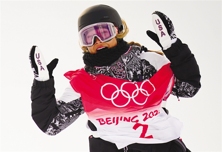 2月10日,美国选手克洛伊·金在比赛中。当日,北京2022年冬奥会单板滑雪女子U型场地技巧决赛在张家口云顶滑雪公园举行。美国选手克洛伊·金夺得此项目金牌。 新华社记者 许畅 摄