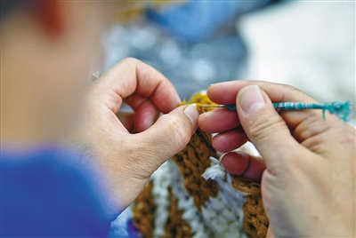 制衣加工淡季时,海霞工作室主动学习手工编制发卡、包包、篮筐等创意手工制品,大家经常聚在一起探讨如何让设计更美观,如何增加销售量,手工制品还能额外增加几百元的收入。