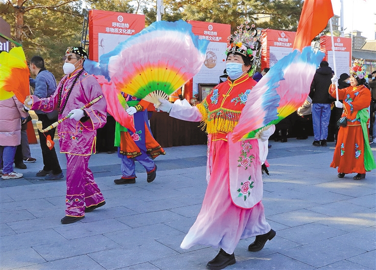 正月以来,在呼和浩特市玉泉区塞上老街广场,由呼和浩特市文化旅游广电局、玉泉区主办的文化活动,包括社火表演、舞龙表演,二人台表演、秧歌队、街舞和广场舞轮番上演。从农历正月初八开始,“第十五届塞上老街非遗庙会暨敕勒川元宵节花灯音乐季”活动在玉泉区大召广场红火启幕, 现场还进行了非遗美食品鉴、“非遗故事会”“网红志愿者直播”等形式多样的文化惠民活动,让广大市民和游客感受节日的红火热闹,为虎年春节增添欢乐、吉祥的喜庆气氛。
