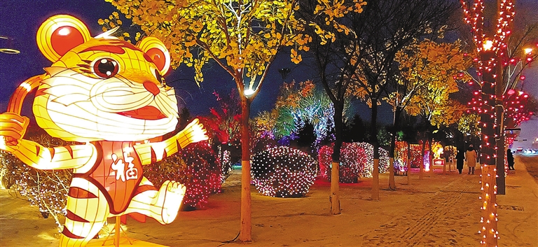 “快到元宵节了,北京冬奥会又在火热进行中,首府街头火树银花、流光溢彩,道路两侧建筑以及街心花园、广场,以生肖虎为元素的‘冬奥’主题灯光秀,以及传统灯笼展,让我们特别享受。”观看热闹的扈大爷说。