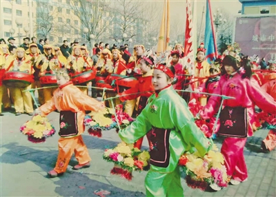 往年西水磨九曲灯会上的秧歌队。 (图片由王福在提供)