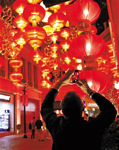 正月十五入夜,大街小巷挂满了各式各样的花灯,到处花团锦簇,灯光摇曳。自发形成的观灯习俗在这天晚上达到了高潮,人们徜徉在各种造型各异、五彩斑斓的彩灯当中,欣赏着端庄的宫灯、奇异的兽头灯、逼真的花卉灯、展翅的鸟禽灯,自得其乐、流连忘返。