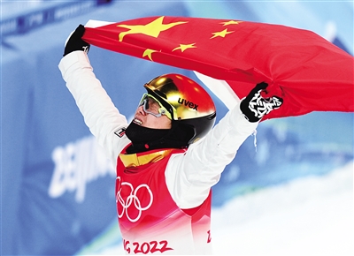 新华社河北崇礼2月16日电 (记者 陈地 李琳海)16日,备受关注的北京冬奥会自由式滑雪男子空中技巧决赛在崇礼打响,中国选手齐广璞在最后一轮跳出了当今世界最高难度动作并高质量完成,以129分的高分力压群雄,中国空中技巧队时隔16年再次拿到该项目奥运金牌。这也是中国队本届冬奥会的第七枚金牌。