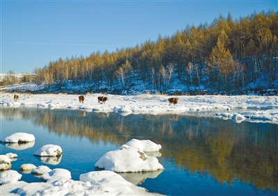 阿尔山不冻河奇观。本报记者 包荭 摄