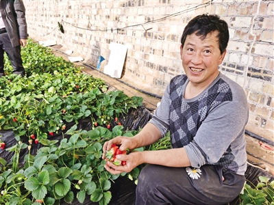 这几天,鄂尔多斯市准格尔旗十二连城乡康布尔村村民刘润月的草莓大棚里绿意盎然,一片繁忙的景象。从邻村兴胜店村集体育苗基地购买的草莓苗经过4个多月的生长,已经果实累累,一亩半的一栋大棚里每天能摘300斤草莓。从12月中旬到春节前的一个半月里,光卖草莓一项,夫妻俩就已经有5万元纯收入。