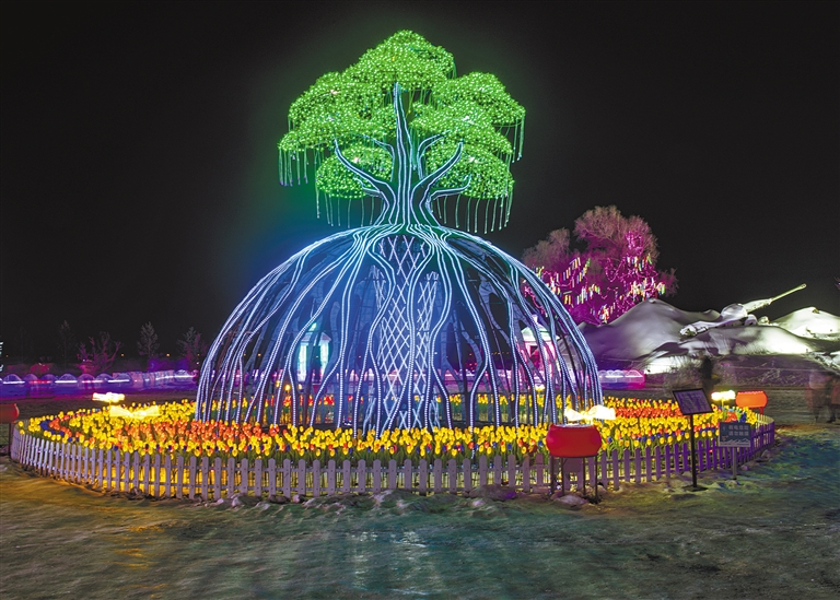 呼和浩特市赛罕区大黑河军事主题公园,霓虹闪烁,如梦似幻。 文/图 郝应敏