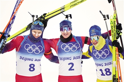 冬季两项赛场决出最后两项冠军。法国选手朱斯蒂娜·布雷萨·布歇摘得女子12.5公里集体出发金牌,挪威选手约·鲍伊称雄男子15公里集体出发赛。冬季两项总共11枚金牌中,挪威队横扫6金。