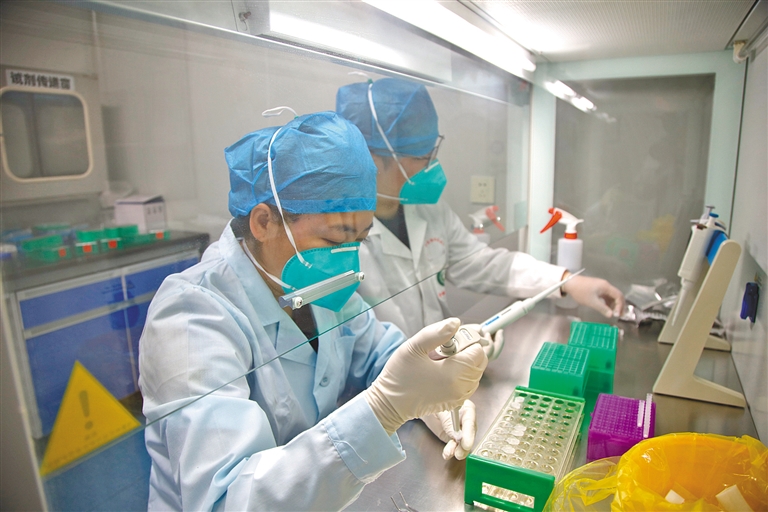 为有效应对呼和浩特市突发疫情,连日来,武警内蒙古自治区总队医院检验与病理科的检验技术人员夜以继日开展核酸检测工作。本报记者 安寅东 摄