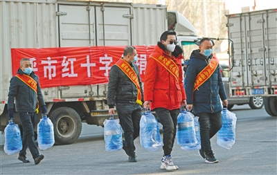 当日,内蒙古日报社全媒体视觉中心党支部联合呼和浩特市红十字会、内蒙古活性水业科技有限公司开展了“我为群众办实事”活动。向值守在封闭管控小区的抗疫一线人员捐赠了饮用水、保温杯、电热水壶等爱心物品。