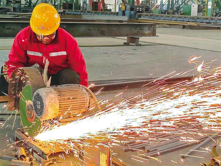 2月24日,中国二冶钢构分公司员工在车间内认真工作。据了解,在疫情防控期间,中国二冶钢构分公司抓紧抓实抓细各项工作,坚持多措并举,全力以赴做好疫情防控和生产工作,确保疫情防控和经济发展两不误。 本报记者 孟和朝鲁 摄