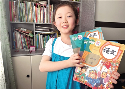 2月26日,小朋友在展示收到的新课本。呼和浩特市中小学将于3月1日如期开学,启动线上教学模式。本报记者 孟和朝鲁 摄