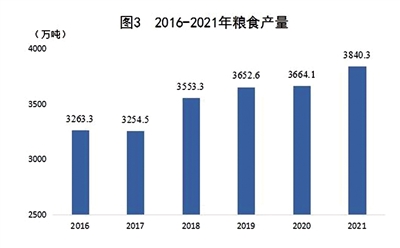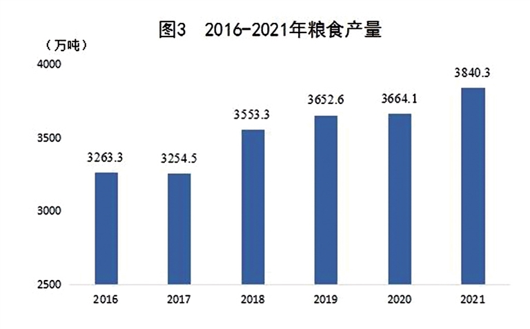 全年农作物总播种面积874.3万公顷。其中,粮食作物播种面积688.4万公顷,比上年增长0.7%。粮食产量3840.3万吨,比上年增长4.8%。