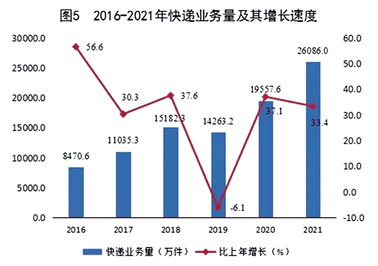 [15]2021年邮政业务总量按照上年不变价计算所得。