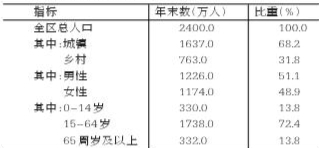 年末全区常住人口2400.0万人,比上年末减少2.8万人。其中,城镇人口1637.0万人,乡村人口763.0万人;常住人口城镇化率达68.2%,比上年提高0.7个百分点。男性人口1226.0万人,女性人口1174.0万人。全年出生人口15.0万人,出生率为6.26‰;死亡人口18.1万人,死亡率为7.54‰;人口自然增长率为-1.28‰。