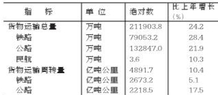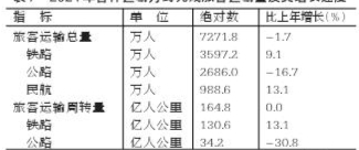 全年货物运输总量211903.8万吨,比上年增长24.2%。货物运输周转量4891.7亿吨公里,增长10.4%。全年旅客运输总量7271.8万人,比上年下降1.7%。旅客运输周转量164.8亿人公里,与上年持平。