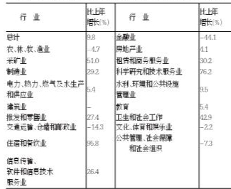 表8  2021年分行业固定资产投资(不含农户)增长速度