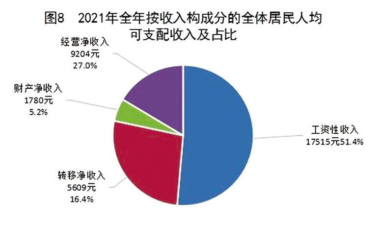 全年全体居民人均可支配收入34108元,比上年增长8.3%。全体居民人均生活消费支出22658元,比上年增长14.5%。