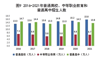 年末全区共有研究生培养单位11个,招生(含非全日制)1.3万人,在学研究生(含非全日制)3.4万人,比上年增长5.9%。普通高校54所,招生15.8万人,在校生50.7万人,毕业生13.0万人。中等职业教育学校200所,招生6.7万人,在校生17.9万人,毕业生4.9万人。普通高中307所,招生13.8万人,在校生41.1万人,毕业生13.2万人。初中719所,招生22.0万人,在校生66.6万人,毕业生21.7万人。小学1661所,招生24.9万人,在校生140.9万人,毕业生22.1万人。幼儿园在园幼儿60.4万人。初中阶段毛入学率为96.5%,高中阶段毛入学率为92.4%。