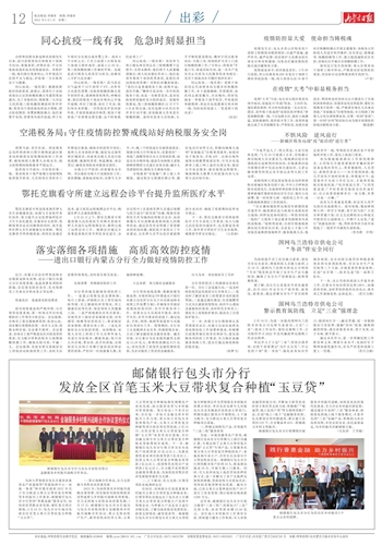 2022年,为加快落实乡村振兴战略决策部署,切实做好巩固拓展脱贫攻坚成果与乡村振兴战略有效衔接,全力支持地方农牧业高质量发展,1月17日,邮储银行包头市分行成功与包头市农牧局签订金融服务乡村振兴战略合作协议,重点支持农牧户生产、新型农牧业经营主体、玉米大豆带状复合种植标准化规模化产业化发展,助力脱贫攻坚与乡村振兴有效衔接。签订协议1个多月以来,全行进一步加大金融支持乡村振兴工作力度,重点加大对包头市优势特色产业、玉米大豆带状复合种植等项目的有效信贷投放,2月23日,全区首笔玉米大豆带状复合种植“玉豆贷”业务在该行落地,全行金融支持全市玉米大豆带状复合种植业务取得初步成效。下一步,邮储银行包头市分行将力争为全市农牧户投放贷款10亿元以上、为惠农惠牧富农项目投放贷款5亿元以上、投放玉米大豆带状复合种植业务贷款3亿元以上、投放特色农牧业产业贷款2亿元以上,全力提升农村牧区金融服务覆盖面,为加快农村牧区经济发展提供强有力支撑。