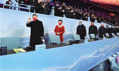 国家体育场华灯璀璨,流光溢彩。19时57分,北京冬残奥会会徽呈现在体育场中央巨幅地屏上。在《和平——命运共同体》的乐曲声中,习近平和夫人彭丽媛同帕森斯等走上主席台,向观众挥手致意。全场响起长时间的热烈掌声和欢呼声。