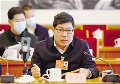 | 3月7日,全国人大代表贾润安在审议政府工作报告时建议,国家相关部门尽快制定煤炭清洁利用指标体系,推进煤化工产业健康有序发展。本报记者 袁永红 摄 |