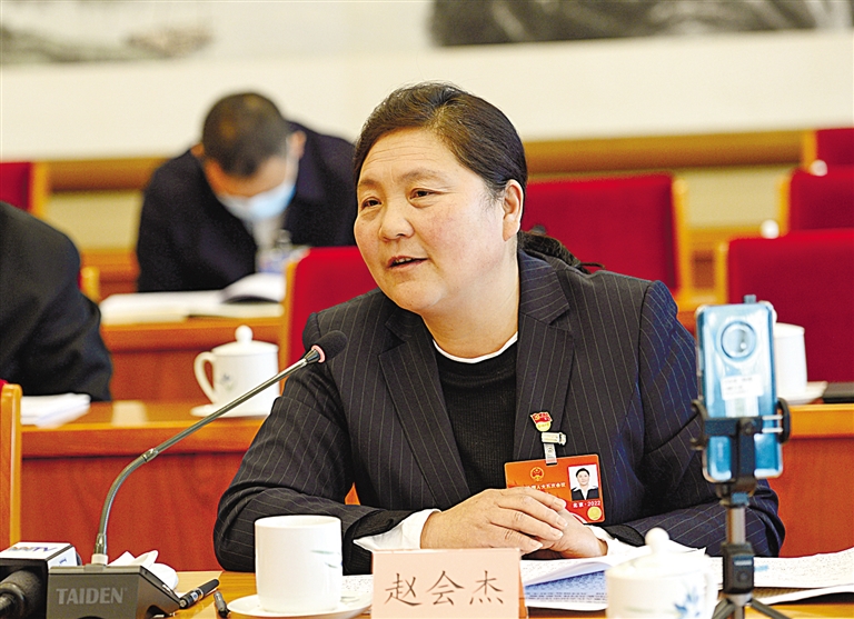 | 3月7日,全国人大代表赵会杰在审议政府工作报告时建议,加大资金支持力度,建立河流垃圾污染常态化监测和收集处理长效化机制。本报记者 袁永红 摄 |