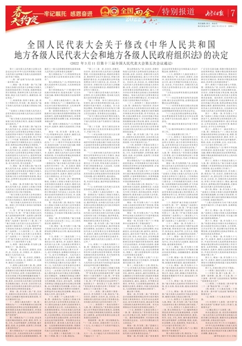 全国人民代表大会关于修改《中华人民共和国 地方各级人民代表大会和地方各级人民政府组织法》的决定