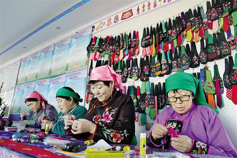 通过攀谈了解到,合作社的绣娘们与周边的兄弟姐妹有着广泛的接触和商贸往来,一针一线不仅绣出了伟大时代的风采,更展示出中华民族一家亲,同心共筑中国梦的民族团结新画卷。目前,合作社带动科右前旗周边乡镇3000多名妇女灵活就业,实现户均增收2000余元。