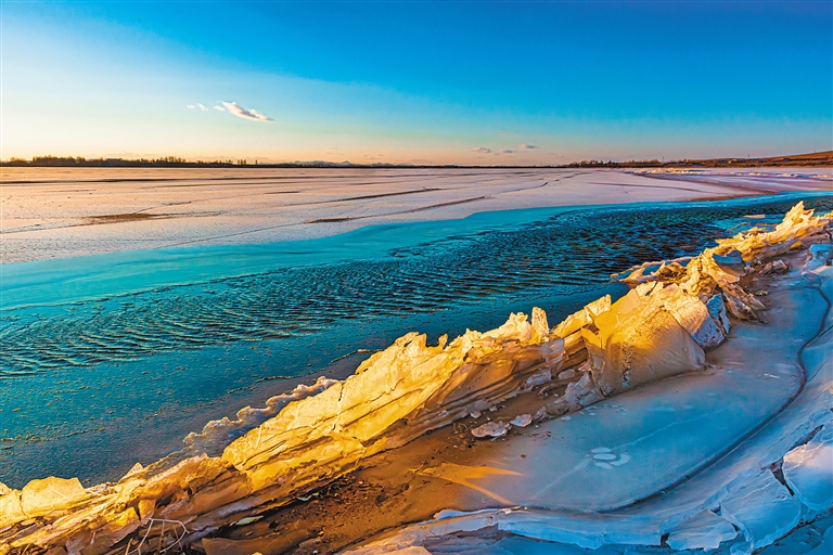 阿鲁科尔沁旗宝力格水库,不冻河与隆起的冰面,相映成趣。文/图 刘文忠
