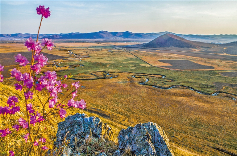 阿荣旗查巴奇鄂温克族乡文布奇曲河四季皆景,美轮美奂:春水潺潺,山花烂漫;绿草如茵,夏雾缥缈;秋水蜿蜒,红叶似火;冬雪初落,银装素裹。文/图 刘振科