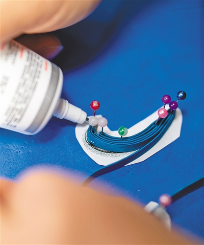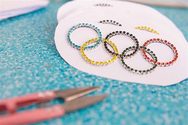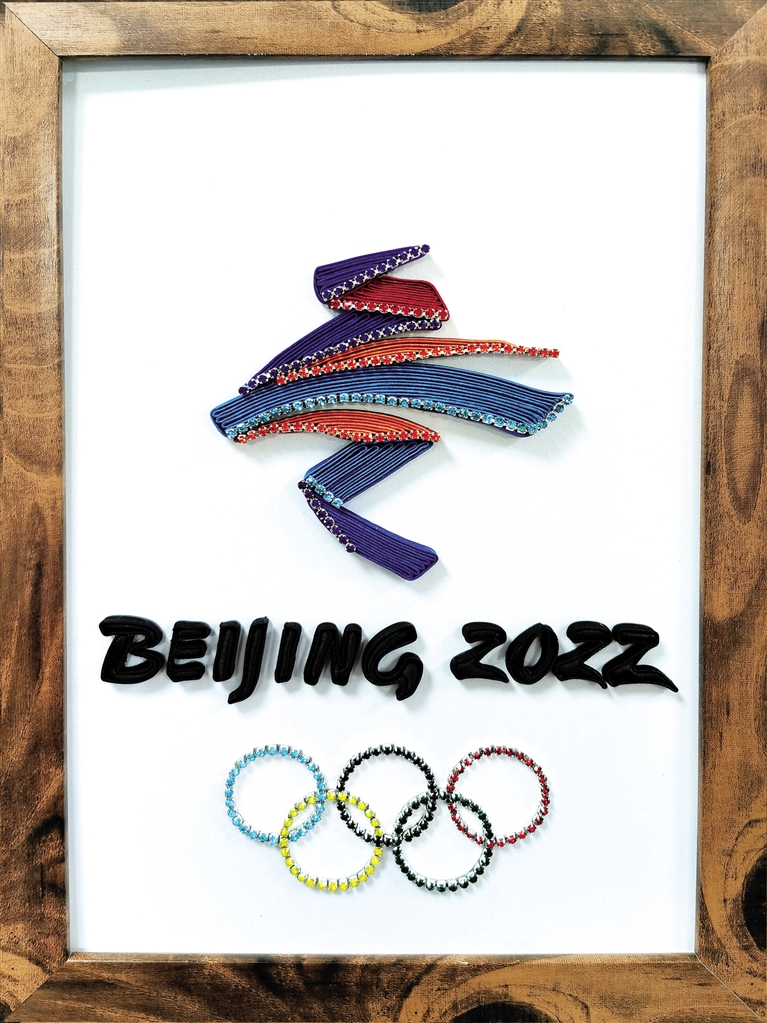 这些伴手礼运用的是传统的盘扣工艺,绘图设计、剪裁、条子制作、填充、粘贴……每一件精美冬奥会、冬残奥会伴手礼都要经过33道制作工序。