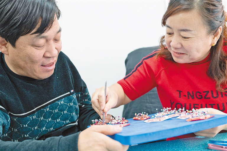走进内蒙古残疾人就业创业示范园的绣蔓手工工坊,瞬间就被墙上展示的一件件精美饰品所吸引,而这些制作工艺考究、造型细腻精致的手工艺品,全部出自一群残疾人之手。前不久,这些心灵手巧的残友们还为北京冬奥会和冬残奥会制作发出了200份伴手礼,这些蕴涵招福纳祥美好寓意的伴手礼,赠送给参加北京冬奥会和冬残奥会的外宾们。