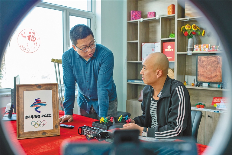身患先天性小儿麻痹的王悦负责填充工作,一提到制作伴手礼,王悦笑呵呵地说:“咱们一个残疾人能给国家的冬奥会、冬残奥会制作伴手礼,那得多荣幸,我这心里别提多高兴了!”