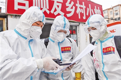 3月18日,吉林市消防救援支队党员先锋突击队队员在进行社区消杀工作安排。吉林市本轮疫情发生以来,各行业各单位第一时间组织以党员为主要力量的抗疫、保障队伍。广大党员身先士卒,让党旗在抗疫一线高高飘扬。 新华社记者 张楠 摄