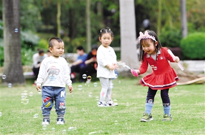 3月20日,小朋友在广西南宁市金花茶公园玩耍。春分时节,人们在温暖和煦的春风中踏青、赏花,乐享春日美景。