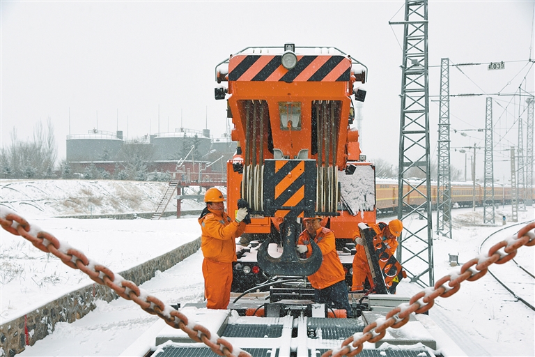 3月17日,内蒙古多地迎来开春以来最大降雪,中铁呼和浩特局集宁机务段救援车间及时组织职工检查保养救援设备,为集中修期间运输安全保驾护航。