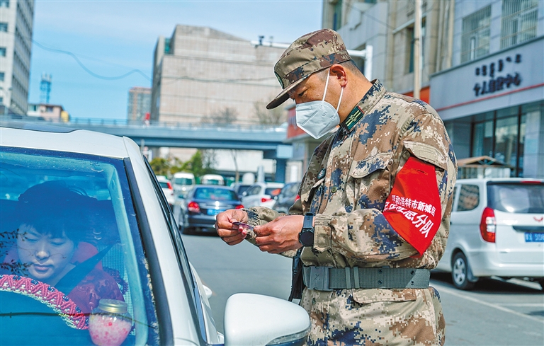近日,呼和浩特市新城区辖区内民兵全力投入到疫情防控第一线,积极参与疫情筛査、核酸检测秩序维护、防控点执勤、场地消杀等工作,配合公安、城管等部门全天候守护在小区门口、交通要道卡点,负责对过往车辆、群众进行登记检测, 为疫情防控提供坚实保障,筑起了一道“迷彩防线”。
