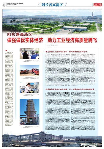 阿拉善高新区是阿拉善全盟工业经济的主战场,近年来,该高新区始终把工业经济摆在突出位置,把实体经济紧紧抓在手上,有力推进经济转型升级,保持园区经济稳定增长,不断从服务和融入新发展格局的高度、落实国家“双碳”大战略的高度、从贯彻落实习近平总书记和党中央赋予内蒙古的战略定位的高度,全面贯彻新发展理念,加紧调结构、优布局、扶企业、强链条,切实把工业的产业层次和整体素质提起来。