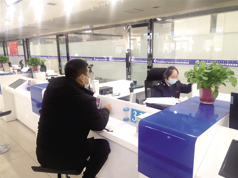 在阿拉善高新区行政审批和政务服务局大厅里,陆续有企业经办人员戴着口罩、拿着资料,准备办理有关事项。内蒙古泰兴泰丰化工有限公司作为较早入驻园区的精细化工企业,生产设备的提质升级迫在眉睫,企业提前对改造项目的材料进行了准备和预审,通过“预约办”方式,加快了企业各项手续办理进度。目前,企业各项手续已办理齐全,计划天气转暖后就开工建设。