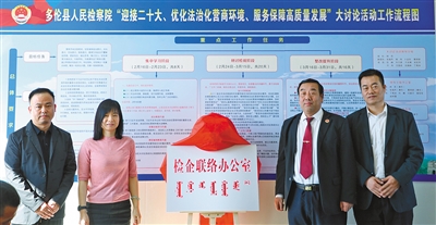 近日,锡林郭勒盟多伦县人民检察院与县工商联联合成立的检企联络办公室挂牌成立。该办公室以“线上+线下”形式,围绕企业用工、劳动合同签订、法律风险防范等内容,举办法律讲堂,增强企业人员法律意识,优化法治化营商环境。 本报记者 郝佳丽 摄