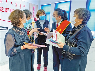 日前,海拉尔铁路运输法院党支部组织干警来到呼伦贝尔市海拉尔区腾阳社区,通过法律讲座、现场解答法律疑问、发放宣传资料等形式,向社区群众宣传与生活息息相关的法律法规。本报记者 李晗 摄