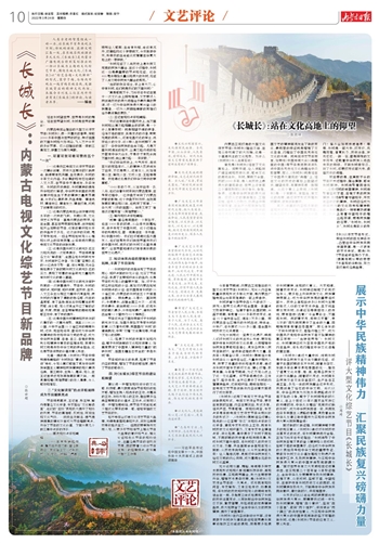 今年春节期间,内蒙古卫视推出的大型文化综艺节目《长城长》,无论从内容承载量到表现形式多样化方面,是内蒙古广播电视台近年来难得的一部上乘佳作。